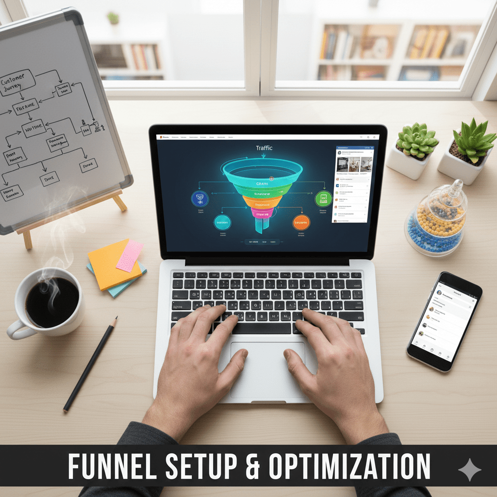 We set up and optimize landing pages, forms, and follow-up systems to ensure leads are captured, nurtured, and converted into sales.
